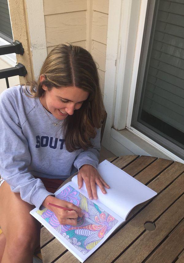 미국 조지아주 애틀란타에 사는 펀더버크(여ㆍ27)씨는 복잡한 패턴의 컬러링북을 하늘색, 핑크색, 보라색 등으로 색칠하며 즐거워했다.