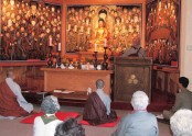 무착스님(서있는 이 왼쪽)과 법장스님이 연등을 준비하고 있는 신도들과 함께 담소를 나누고 있다.“감사.베푸는 삶 살아야” 대한불교 조계종 필라델피아 화엄사는 지난 22일 오전 11시 화엄사 본당에서 무착 큰스