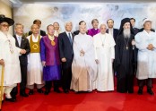 <명동성당 꼬스트 홀에서 프란시스코 교황과 기념 촬영> 총무원장 자승스님은 18일 서울 명동성당에서 이웃종교 지도자들과 함께 교황을 만난 후 프란시스코 교황 방한 활동 메시지를 발표했다.자승 스님은 메시지